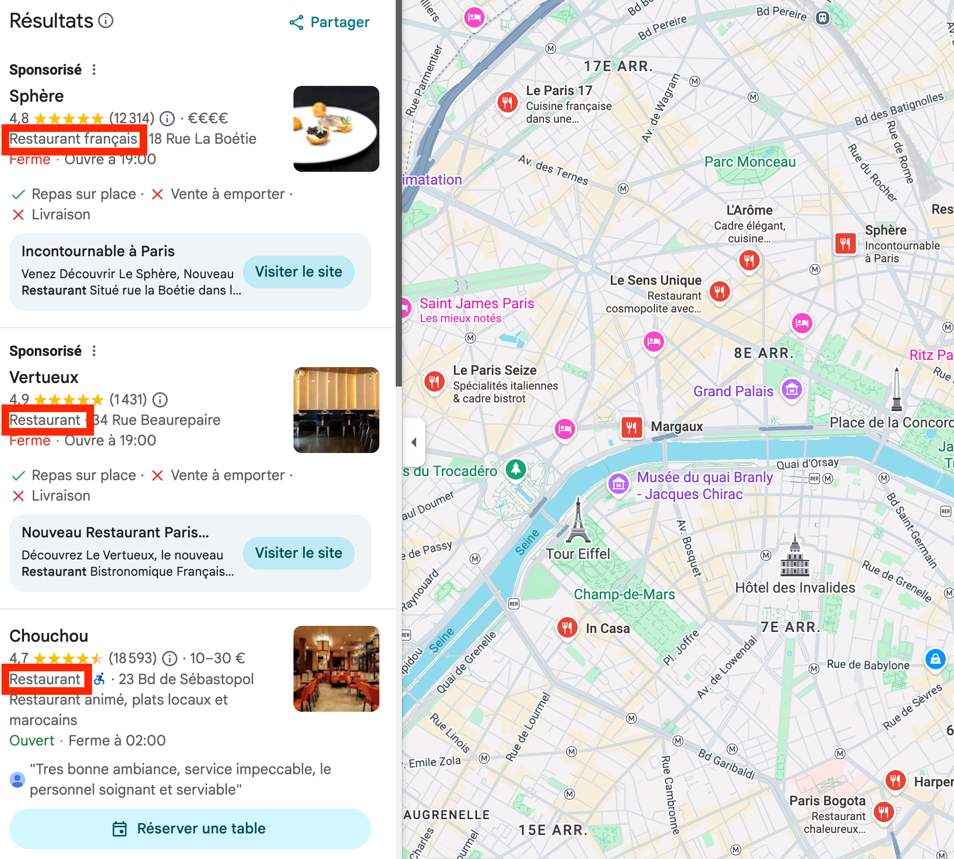 - Un bar qui sert aussi des repas reste généralement classé comme Restaurant.